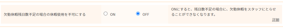 3. オプション設定「欠勤休暇残日数不足の場合の休暇使用を不可にする」をOFFにする
