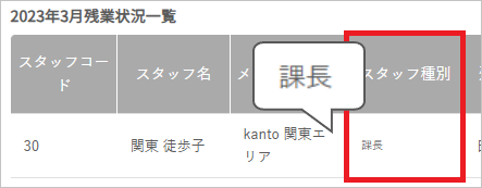例外として、残業状況一覧と年休管理簿には、過去当時のスタッフ種別を表示します。
