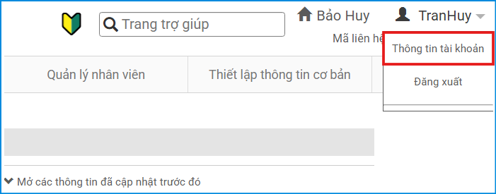2. Trong menu hiện ra, nhấn vào [Thông tin tài khoản]
