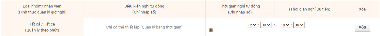 Giờ nghỉ theo nghỉ tự động sẽ được cộng gộp với giờ nghỉ theo chấm công.
