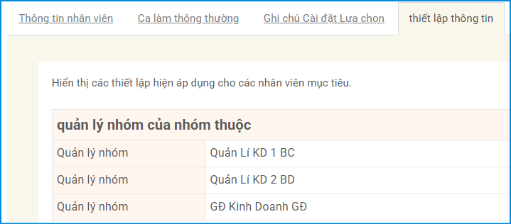 Đối với nhân viên, các cài đặt sẽ được áp dụng dựa trên Nhóm chính mà họ thuộc.