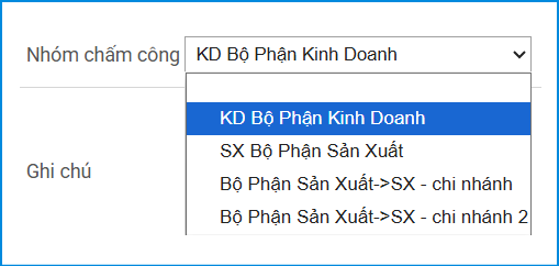 Nhóm mà nhân viên chấm công tại đó được gọi là Địa điểm chấm công (Nhóm chấm công).