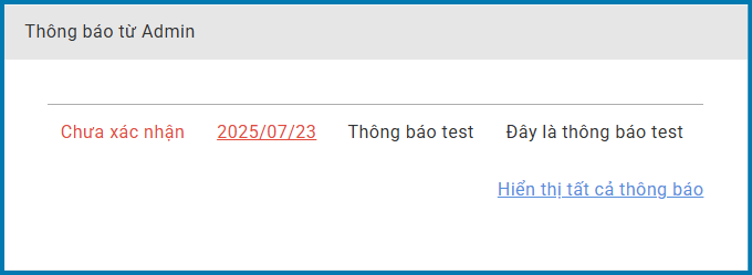 Khi admin có gửi thông báo cho nhân viên, nội dung thông báo đó sẽ được hiển thị trong mục này.