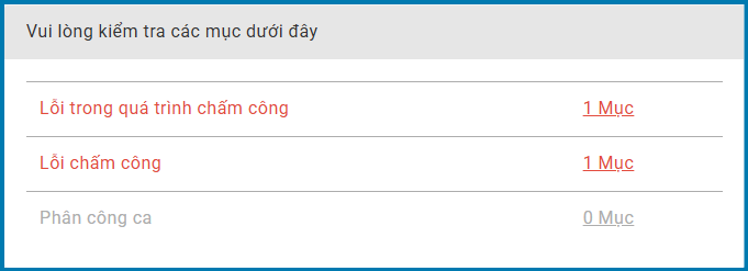 Khi chấm công thiếu hoặc có lời mời đăng ký ca làm thì số mục tương ứng sẽ được hiển thị.